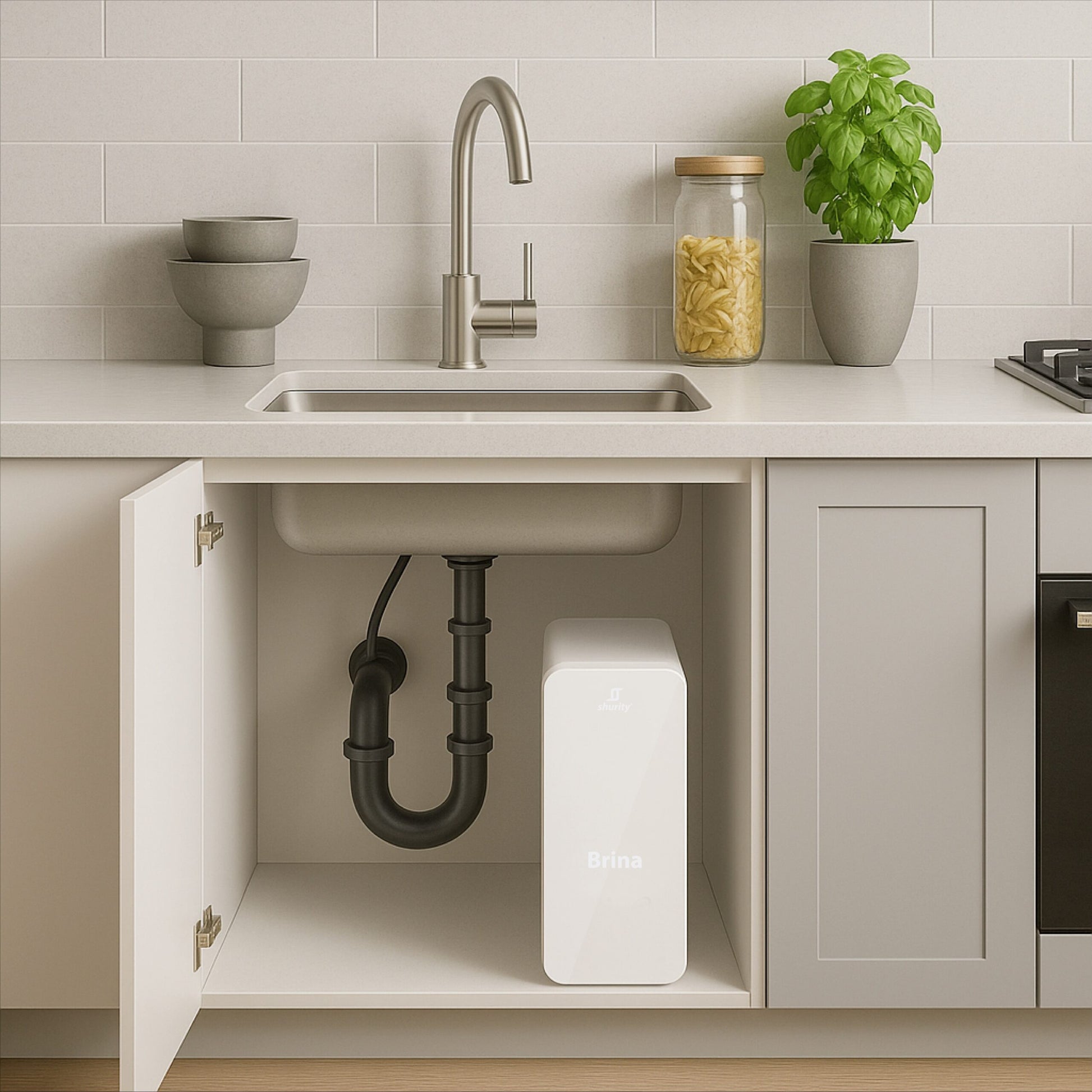 Brina está diseñado para una instalación completa debajo del fregadero de la cocina:
